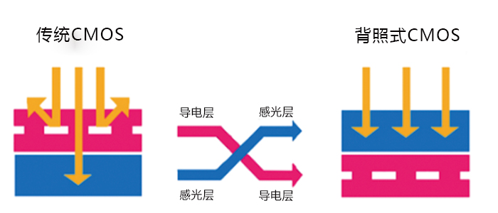 傳統(tǒng)的前照式結(jié)構(gòu)的傳感器,感光二極管位于電路晶體管后方,進(jìn)光量會(huì)因遮擋而受到影響,感光變小,感光能力弱。而MSH20采用背照式CMOS,背照式結(jié)構(gòu)的傳感器將感光層移至導(dǎo)電層上方使得傳統(tǒng)結(jié)構(gòu)發(fā)生改變,整個(gè)感光層對(duì)入射光線更加敏感,獲得了更好的亮度、噪點(diǎn)控制和感光度。